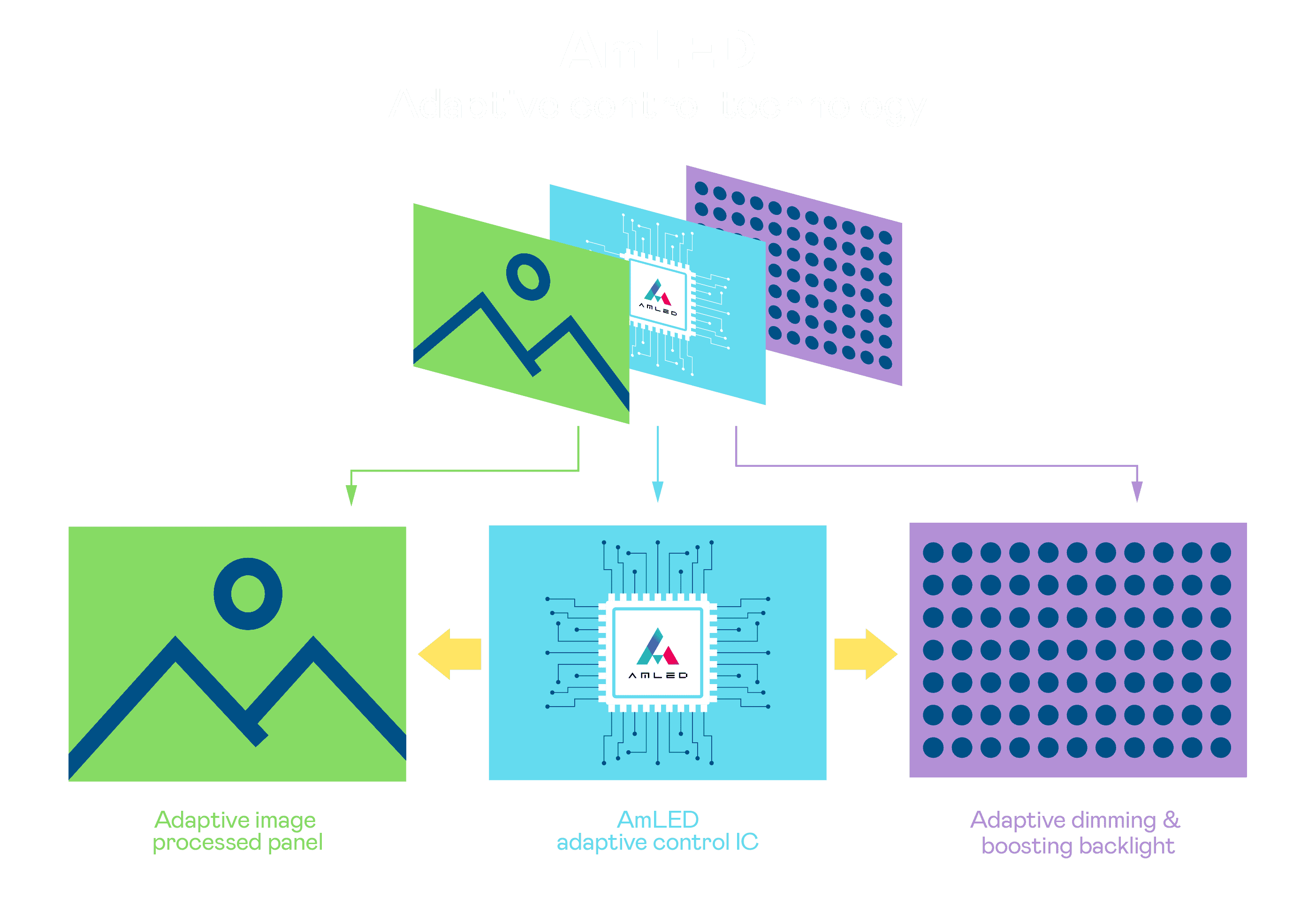 色容量 (Color Volume) 与对比度是评价显示技术的重要指标,,,,888.BY集团电子游戏 AmLED 技术透过独家动态对比及峰值亮度调变,,达到 HDR 1000 极致高亮与层次分明的黑,,,,大幅扩大从极亮到极暗的色域及表现层次,,,,创造逼近真实世界饱满、、、、细腻又亮丽夺目的缤纷色彩。。。。 AmLED 以 Mini LED 作为显示器的背光单元,,实现高精细度的二维矩阵局部调光 (Local Dimming),,,提高画面的动态对比范围,,,其采用无机发光源,,,,材料特性稳定,,,,发光亮度可为有机 LED(OLED) 的数倍,,也不会影响元件的寿命或造成烙印(Burn-in)现象。。