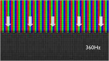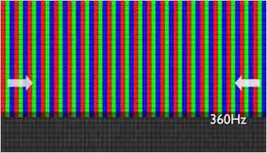 传统液晶驱动是从左到右单向进行,,,,在画面更新速度愈来越愈快的情况下,,位于驱动线路末端的右下角区域,,,,画素的闸极来不及在短时间内获得足够电压,,无法显示出正确的颜色资讯。。