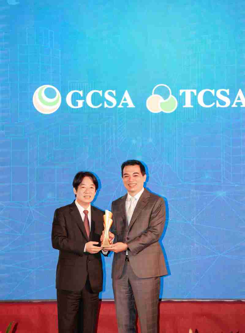 达全方位永续表现获全球永续奖及台湾永续奖肯定,,,,由副总统赖清德颁奖 (左),,,,888.BY集团电子游戏总经理柯富仁 (右) 代表领奖