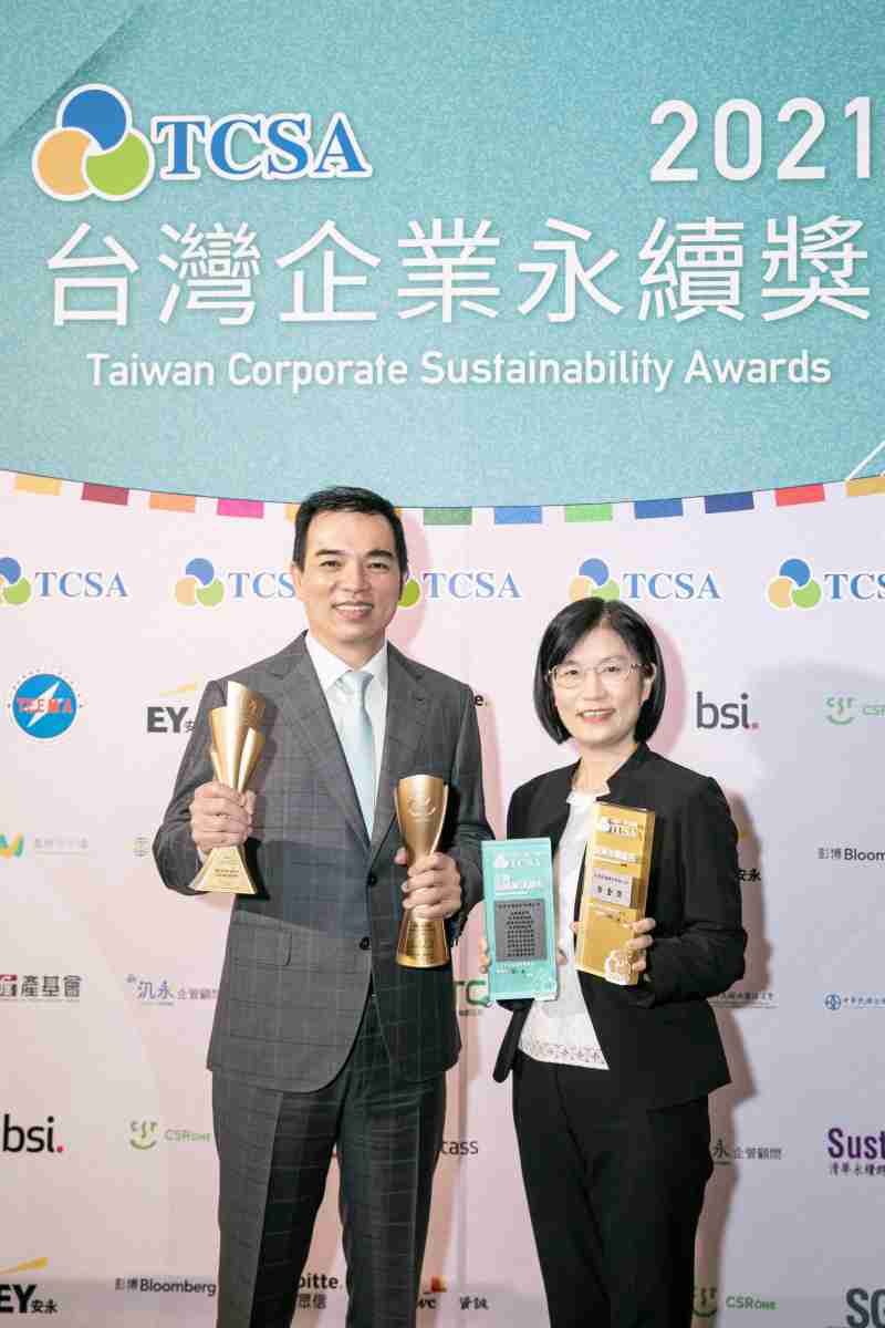 达在台湾永续奖所评比环境、、社会、、、、治理等各面向的永续绩效均获高度肯定 (左:888.BY集团电子游戏光电总经理暨营运长柯富仁,,,右:888.BY集团电子游戏光电永续长古秀华)